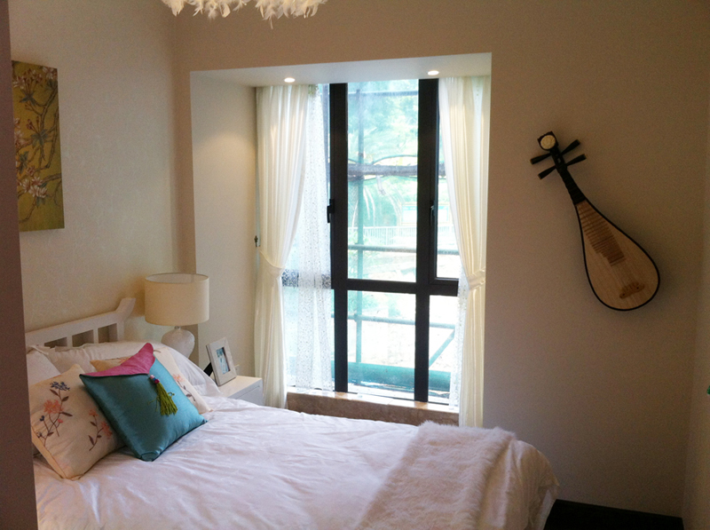 空間裝飾采用簡潔、硬朗的直線條,不僅反映出現(xiàn)代人追求簡單生活的居住要求,更迎和了中式家居追求內(nèi)斂、質(zhì)樸的設(shè)計風(fēng)格,使中式風(fēng)格更加實用、更富現(xiàn)代感。頂部裸露混凝土樓板與地面白色瓷磚以及石膏板頂與地面水泥地坪漆形成造型相呼應(yīng),質(zhì)感相對比。在無窗的客衛(wèi)設(shè)計了一面透光玻璃磚墻并壓上窗花格,時刻彰顯環(huán)保、低碳和美家居生活。