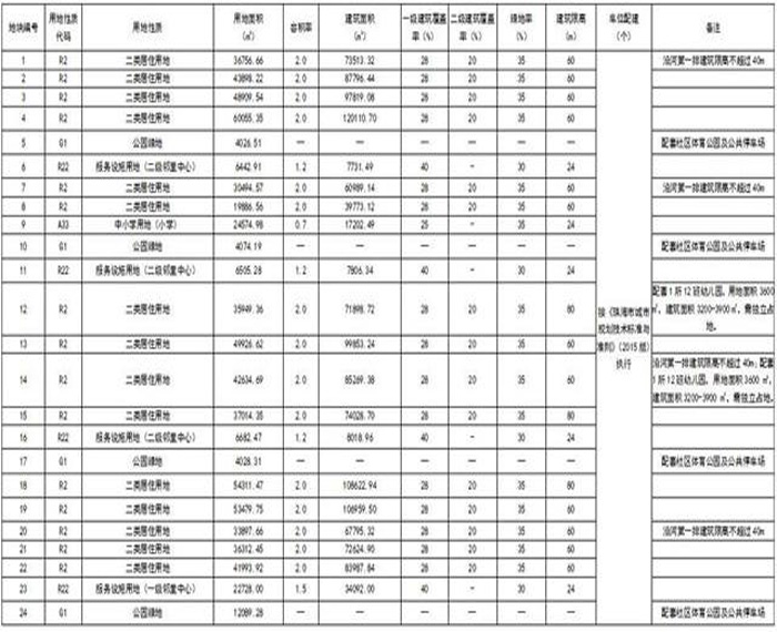 公告文件顯示,項目的24個地塊中,15個地塊用地性質為二類居住用地,用地面積達625521.17平方米,占項目總用地面積的近七成。公告指出,為塑造良好的城市形態,可結合區位特點,建筑風貌控制要求等在地塊間進行建筑規模平衡。臨黃楊河第一排建筑限高不超過40米,其他建筑限高原則上不超過60米,局部建筑限高按60-80米控制,其他指標按《珠海市城市規劃技術標準與準則》執行。同時,公告強調,15個二類居住用地地塊中,有兩個各需配建一所獨立占地的12班幼兒園,用地面積均為3600平方米,建筑面積均為3200-3900平方米(計容建筑面積)。