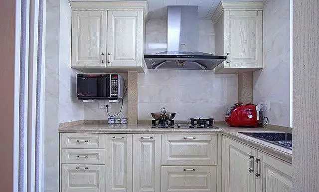 廚房,櫥柜全部都是定制的,暖暖的灰白色很舒服